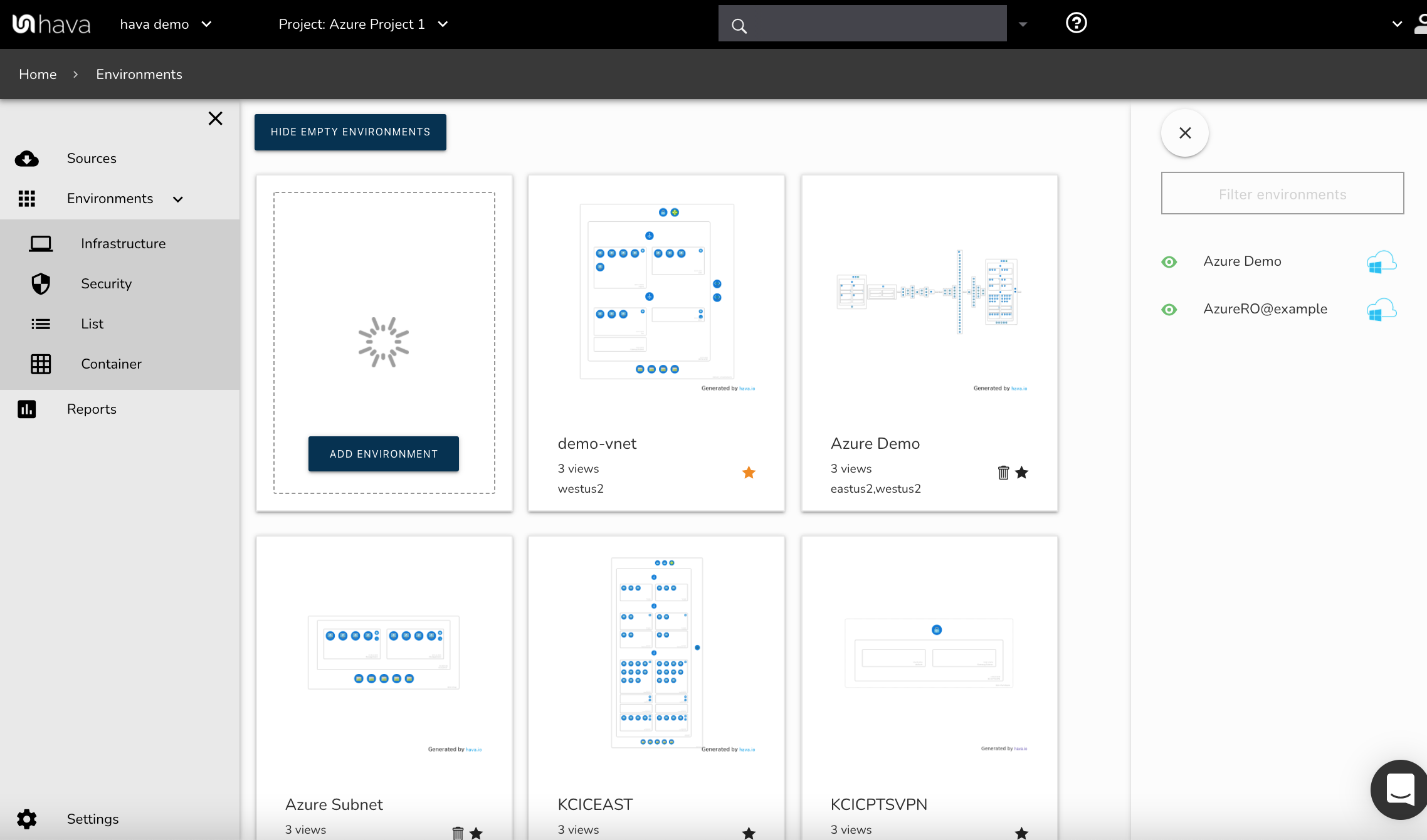 Up until now, when you created a user in Hava and allowed them to sign in to your account, they could see all the connected data sources (cloud accounts) and could view all the diagrams related to those sources. Sometimes however, this may not have been ideal, especially if you have multiple projects, multiple teams or external consultants who are only concerned with one particular environment.